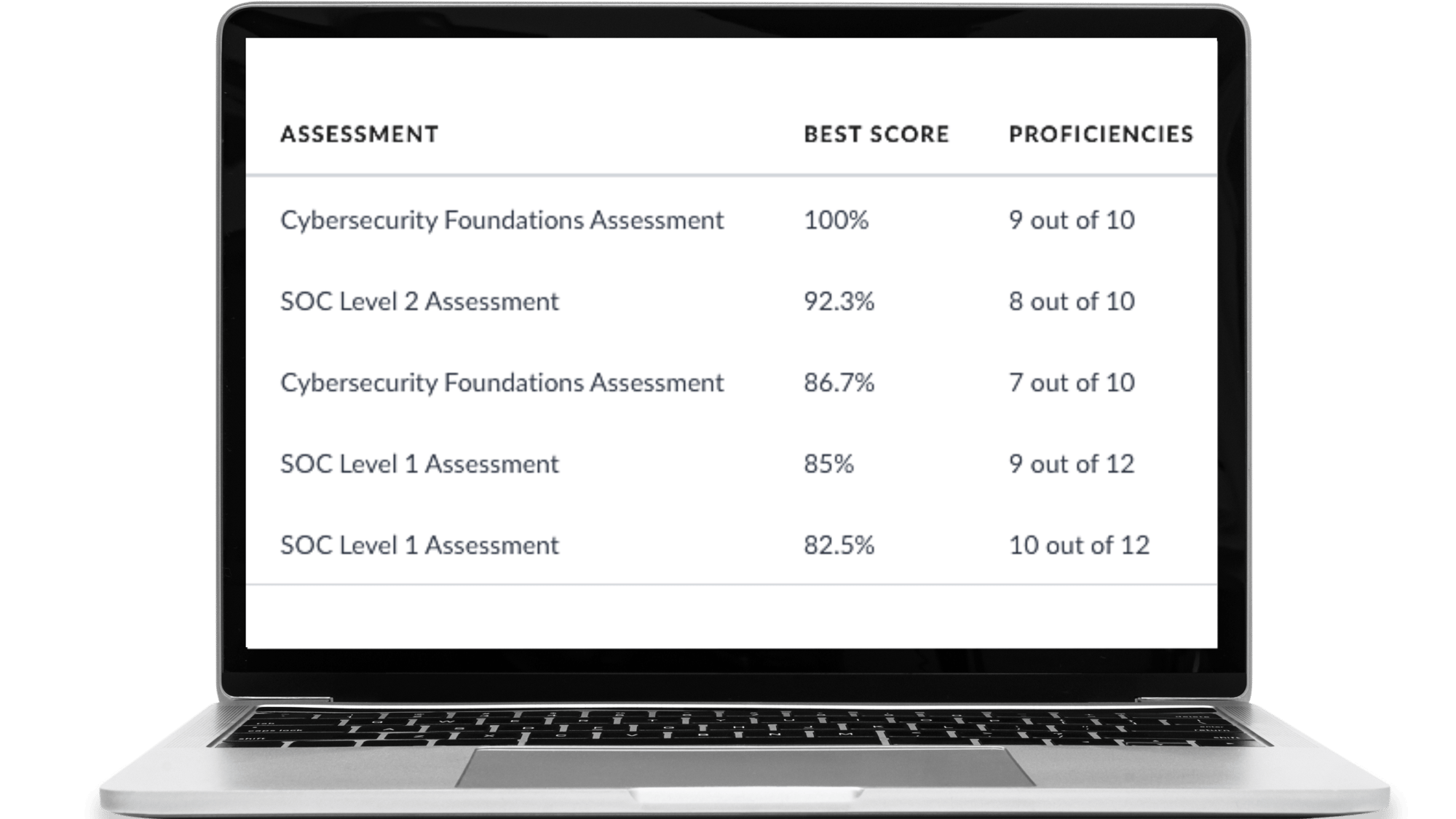 Deliver personalized plans >Use skills data for reporting, strategic analysis and to track individual progression. Evidence team readiness with SOC metrics such as response times or use granular data on personal progress and TTP coverage.